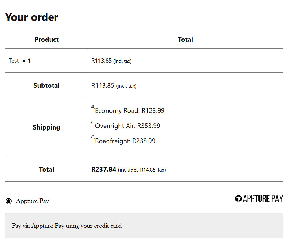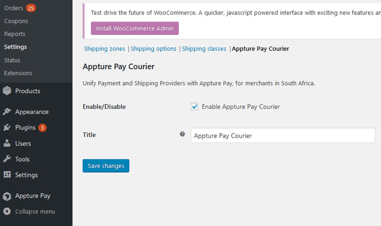 - Enable the Appture Pay Courier by ticking the Enable/Disable checkbox and click Save Changes