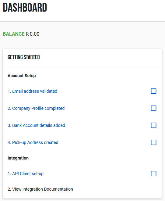 Complete all 4 steps for the Account Setup and the first step under Integration (1. API Client set-up)