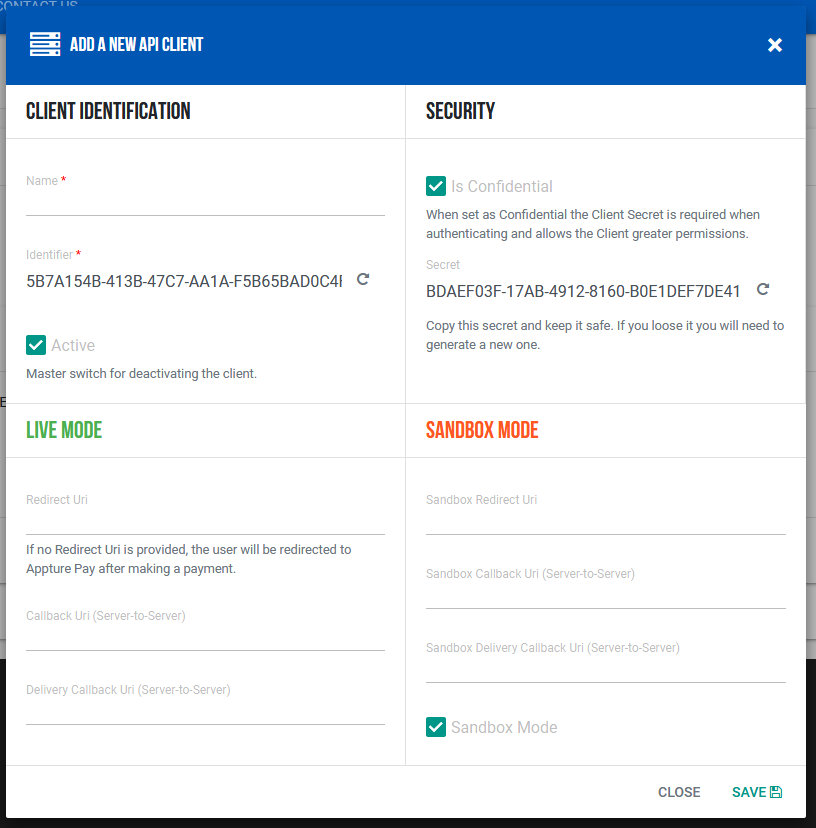 - Paste both the Client Identifier and Client Secret into the corresponding fields