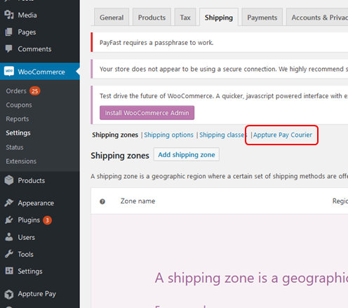 - Enable the Appture Pay Courier by ticking the Enable/Disable checkbox and click Save Changes
