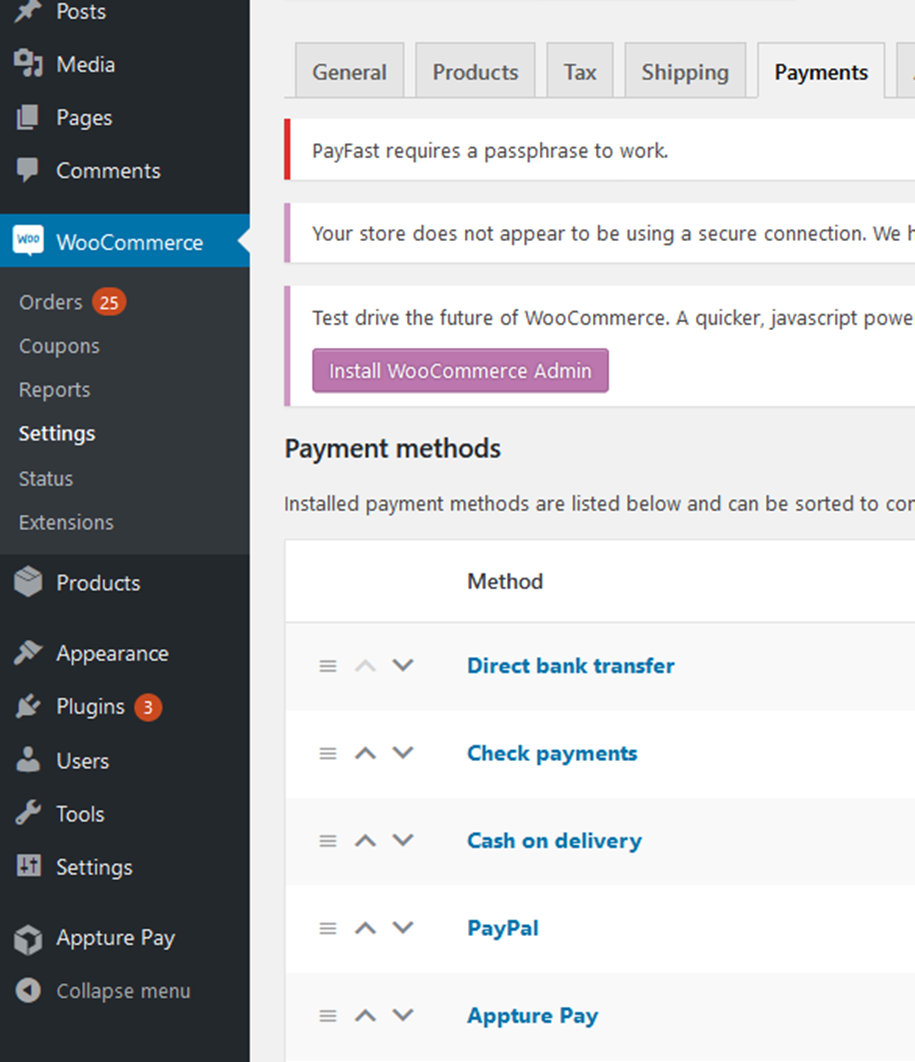 - Now, head back to your WordPress site where you still have the Appture Pay Settings page open